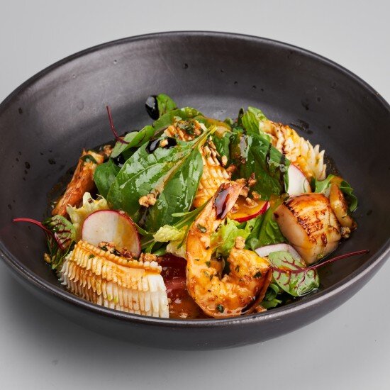 Теплый салат с дарами моря
