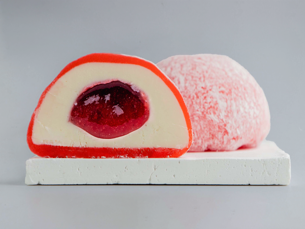 Рисовое тесто, начинка базиликово-клубничная, с фруктовым пюре и свежим базиликом