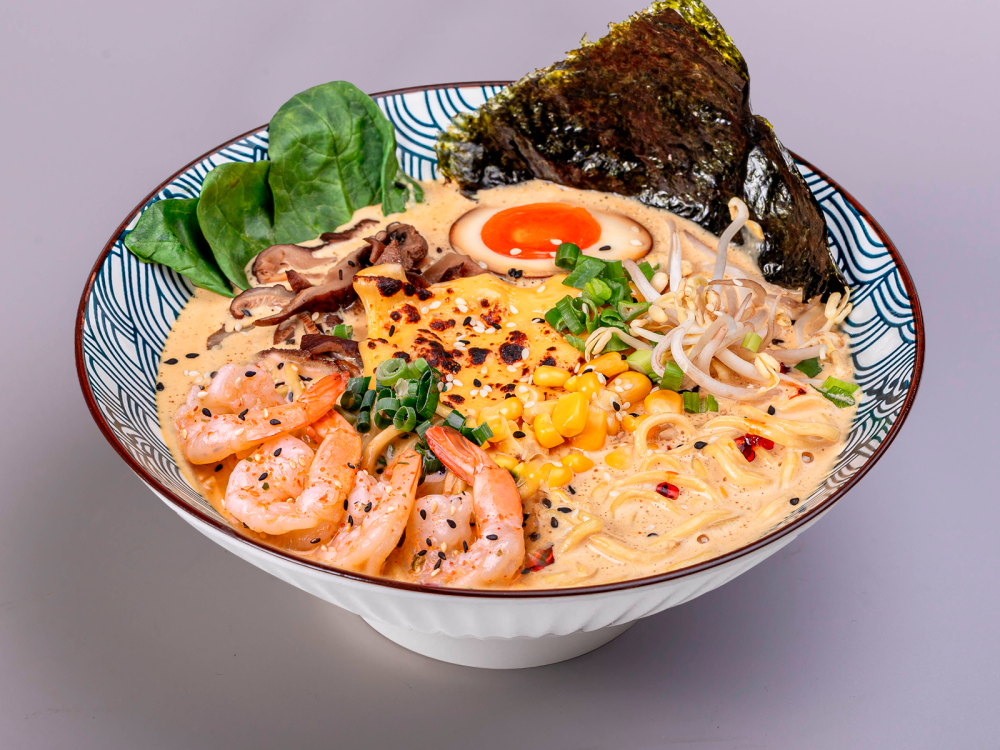 Рамен сырный с креветками