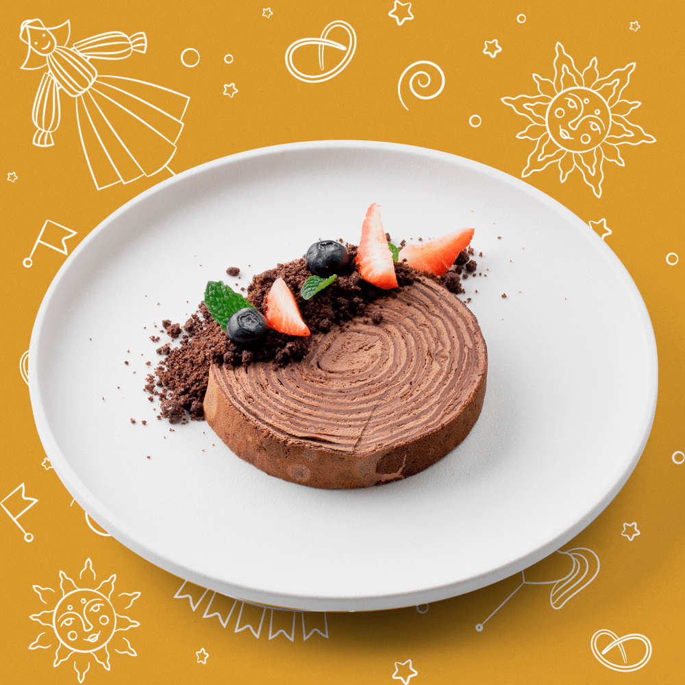 Фруктовый блинный ролл с соусом крем-чиз и карамелью