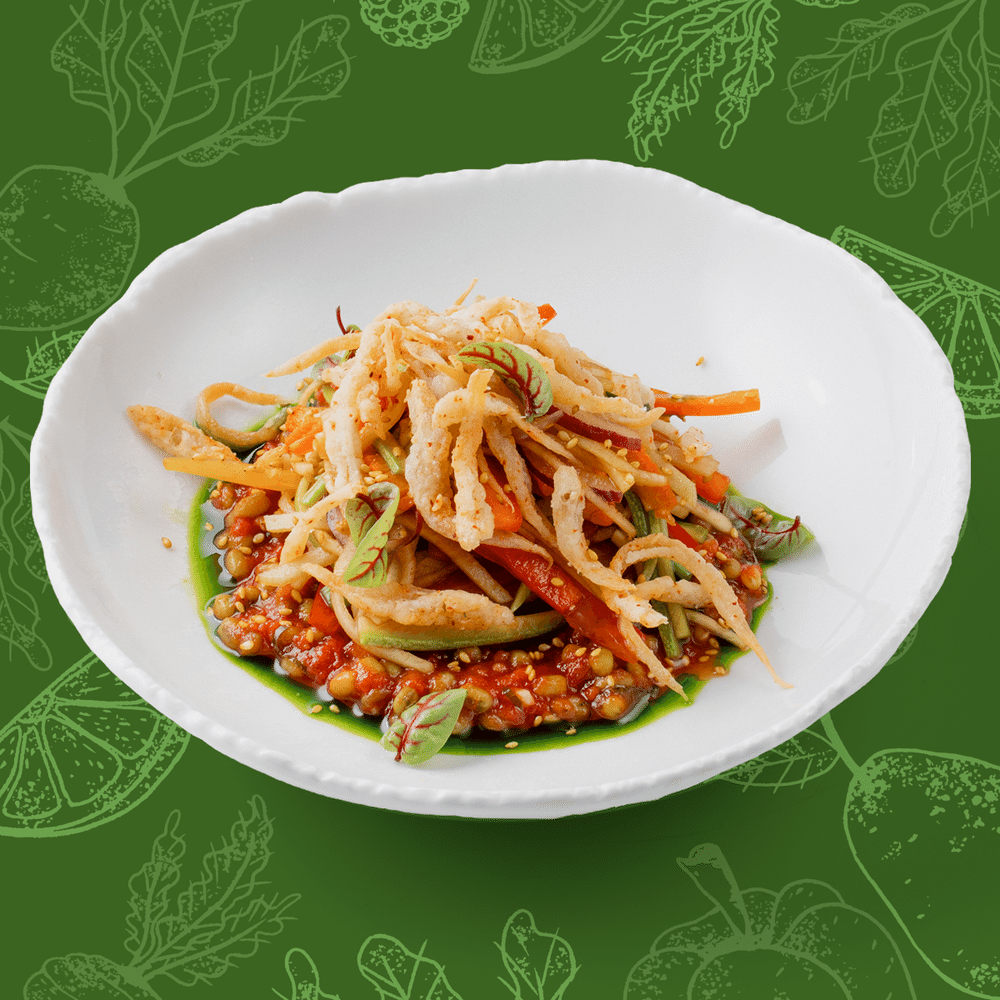 Цукини, перец болгарский, капуста кальраби, красный лук, зеленый лук, кинза, кукуруза, вешенки, томаты